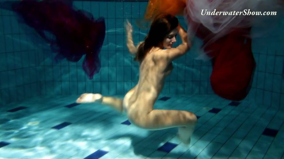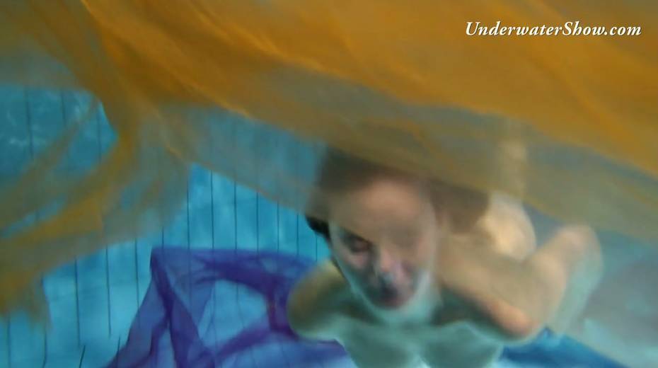 Breath taking underwater show featuring sexy babe in dress